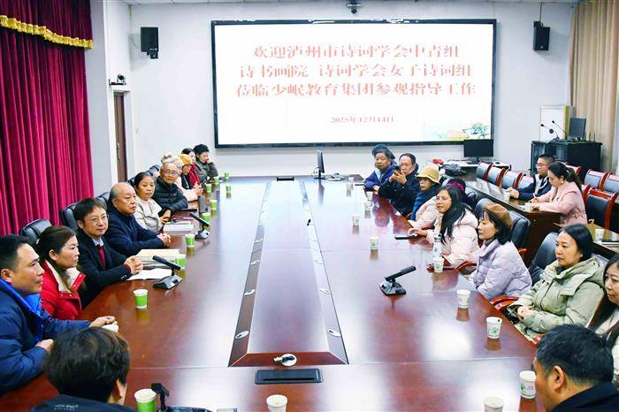 座谈会上,陈泽治简要介绍了泸州市诗词学会的情况,以及此次活动的参会领导、成员和参观感悟。市诗词学会及部分会员向少岷教育集团慷慨赠送《屈子诗魂万古扬》《泸州诗词》年刊、绘画作品、原创诗词作品和组刊。孙孝莲更是向饶敏赠送个人诗词专辑三部,以此表达深厚的情谊。少岷教育集团董事长王忠平介绍,集团历经40多年发展,从区乡起步逐步壮大,构建起涵盖中、高等职业教育、普通教育、短期技能培训等多元化办学体系。集团立足本地多区域布局,设农业、医学等20 余个专业,规模达数万人。未来,集团将以三河职院为引领,推进职业教育、基础教育、短期培训等多元发展。集团整合旗下办学单位和农场以及合作单位资源,联合创办中老年继续教育机构———金年学院,在未来三年深度融合、探索创新。