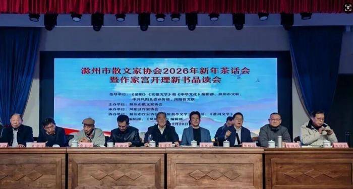 12月20日至21日,滁州市散文家协会2026年新年茶话会暨作家宫开理新书品读会在中国农村改革发源地——凤阳县小岗村举办。本次活动由滁州市散文家协会主办,凤阳县作家协会承办,得到了《清明》《安徽文学》《中华文化》等多家文学期刊编辑部及凤阳县委宣传部和市、县文联的指导与支持。省作协副主席、《安徽文学》主编李国彬,市文联党组成员、副主席钱朝农,凤阳县委常委、宣传部部长、小岗村党委第一书记李锦柱、滁州市散文家协会副主席梁后俊、中华诗词学会书画界工委委员、省诗协常务理事、滁州市散文家协会副秘书长高大国以及来自省内外文学界知名作家、媒体记者、市散文家协会和凤阳县作协代表100多人齐聚一堂,共话散文创作,品读文学新作,感受凤阳深厚的文化底蕴与小岗村的时代精神。
