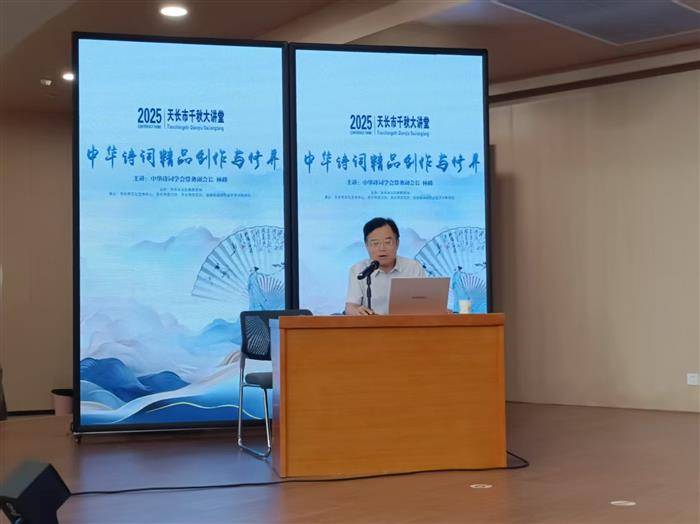 为弘扬传承中华优秀传统诗词文化,诗赋新时代,放歌和美乡村。9月16日,在天长市文化艺术中心,由天长市文化和旅游局主办,市文化艺术中心、市图书馆、市文化馆、安徽省诗词协会驻天长联络处承办,市图书馆副馆长朱虹主持,特邀中华诗词学会常务副会长、《中华诗词》杂志社常务副主编林峰做客千秋讲堂,这也是天长诗词发展30多年来首次。为天长诗词爱好者分享《中华诗词精品创作与修养》中的诗和远方,来自全市近百名诗词爱好者聆听授课。