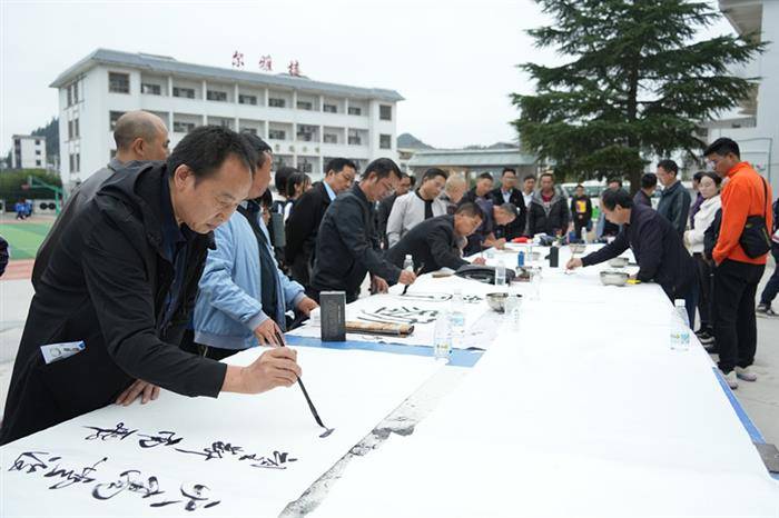 上午9时,采风团从兴仁市出发,沿途欣赏了打鱼凼水库的大美风光,到达兴仁登高新材料有限公司参观,感受了兴仁市龙头企业的魅力;接着先后参观了贵州龙凯科技有限公司、兴仁市第八中学、巴铃镇国学堂、大普村薏仁米加工厂、屯脚镇苗西南水厂,并到屯脚中学开展诗教活动,现场查看了屯脚中学的诗词文化墙,走进诗教课堂,为学生讲解诗词,采风诗友中的书法爱好者还现场创作,为屯脚中学留下诸多墨宝。