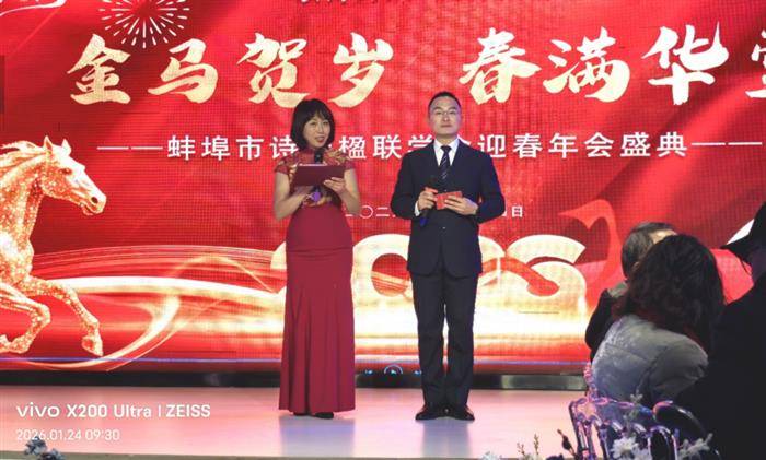 ”马蹄踏韵开新卷,诗笔题春焕锦章。”1月24日上午,蚌埠市诗词楹联学会以“以诗为媒服务银龄 金马贺岁春满华堂”为主题的2026年迎春年会隆重举行。市委宣传部原部长、市老年大学校长王勇勇,市政协原副主席、学会顾问刘沛学,市新四军军史研究会副会长郭照东,市作协主席孙子夜等嘉宾与银龄朋友们齐聚一堂,在笔墨书香与弦歌雅乐中喜迎丙午马年。