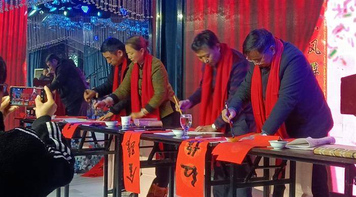 “书联合璧”环节成为点睛之笔,刘沛学、王水湘等八位书画爱好者现场挥毫,为抽取到的楹联即兴创作,16副马年春联几分钟内跃然纸上。有奖猜灯谜环节增添互动乐趣,吴志昌老师准备的诗词、民俗类灯谜引发踊跃抢答,欢声笑语中增进情谊。年会在大合唱《我和我的祖国》中落下帷幕,全体与会者歌声嘹亮,将爱国情与新年期盼融入旋律,余韵悠长。