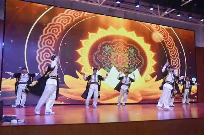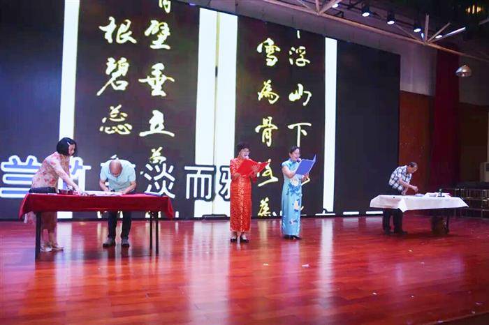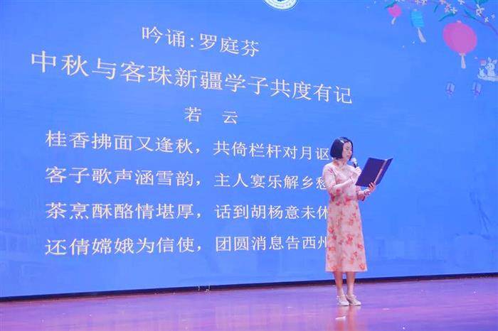 文艺展演环节亮点纷呈,传统与现代艺术形式交相辉映。舞蹈《瑞狮纳福》以灵动舞姿传递双节祥瑞之气;诗朗诵《春江花月夜》带领观众领略古典文学的意境之美;国庆中秋双节同题诗词优秀作品朗诵,精选师生原创佳作,展现当代校园对家国、节日的深刻感悟;萨克斯独奏《城里的月光》以西洋乐器演绎中秋情思,呈现跨界艺术魅力;吟诵《诗经·蒹葭》用传统吟诵方式还原上古诗歌音韵,让观众沉浸式感受经典魅力;古筝独奏《渔舟唱晚》以悠扬旋律勾勒水乡暮色图景,尽显民乐雅韵;舞蹈《天山花雨》展现边疆风情,丰富活动艺术维度;节目期间,珠海市诗词楹联学会向新疆部学子赠送了情意浓浓的中秋礼包;书画家们亦现场挥毫,将精心创作的书画作品赠予珠海市实验中学留存纪念。最后,一曲《中国字中国画》以激昂旋律深情礼赞中华文化,为整场活动画上了圆满的句号。