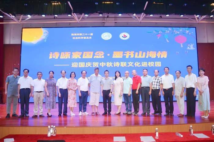 2025年10月4日,作为珠海市第二十一届社会科学普及月重点活动之一,“诗咏家国念·墨书山海情”庆国庆贺中秋诗联文化进校园活动在珠海市实验中学顺利举办。本次活动由珠海市社会科学界联合会主办,珠海市诗词楹联学会、珠海市实验中学承办,珠海市博士联谊会、清韵诗社协办,以诗联为纽带,将家国情怀与中秋文化深度融合,为300多名师生呈现一场兼具思想性与艺术性的文化盛宴。