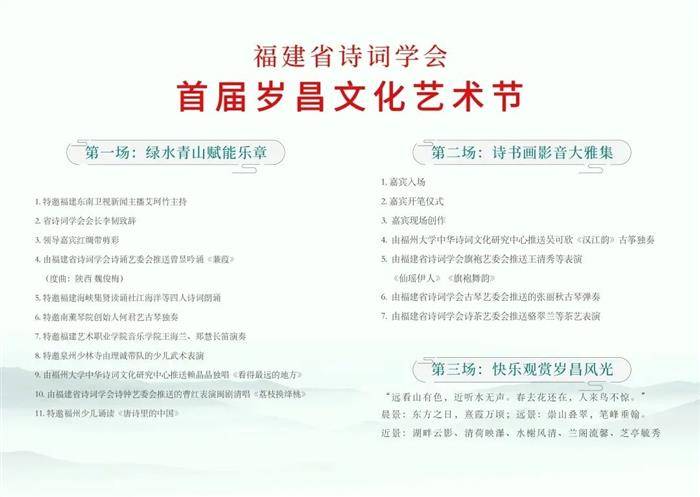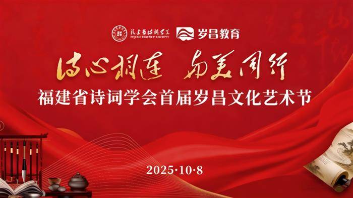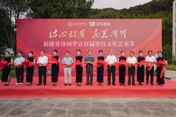 10月8日,由福建省诗词学会倡导并联合福建岁昌教育基地举办首届文化艺术节在榕隆重举行。中华诗词学会会长周文彰,中华诗词学会秘书长杭中华、福建省政协副主席、省炎黄文化研究会会长阮诗玮等出席并与福建省诗词学会长李韧、福州大学党委书记陈国荣、省政协文化文史委副主任江登峰、福建岁昌教育基地董事长林子金等一起为该文化艺术节剪彩,大家纷纷点赞这次文化艺术节的独特魅力。节目由福建东南卫视主播艾珂竹主持。