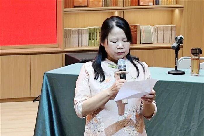 活动现场,东莞市诗词楹联学会专职副会长兼秘书长范雪芳组织与会者专题学习了党的二十届四中全会精神。