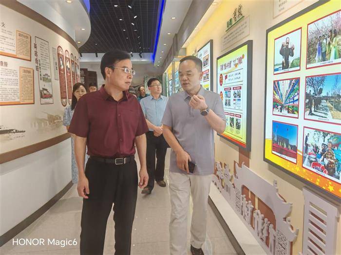 陈国林重点介绍石梁镇经济文化高质量发展情况,走进参观镇两馆,介绍了千秋古郡石梁历史,石梁镇作为天长市历史文化古镇,曾是古石梁县治所,承载着千年文脉传承,当地亦留存多处与古代诗词、历史事件相关的文化印记。先有“石梁“后有“天长”,到卑梁之衅历史启示,特别是明朝王高“匹马向天长,扁舟渡石梁”诗句,再到世界名歌“好一朵茉莉花”创作者、石梁人、著名作曲家何仿等。同时参观了石街社区、下阿溪植物园等场所。