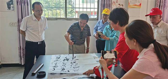 吟诵毕,登山健步开启。虽山势险峻,台阶漫长,但众人量力而行并沿途向登山游人进行了环保,尊老等公益社会宣传。下午,诗人们参观了永新禾山水库、禾山宋朝雁塔和禾山甘露寺以及乡政府支持、乡贤们捐资建办的图书馆“开云书房”。永新的山水、永新的人文气息再次激发了诗人浓郁的创作热情,有人即兴题诗并为乡政府留下墨宝。