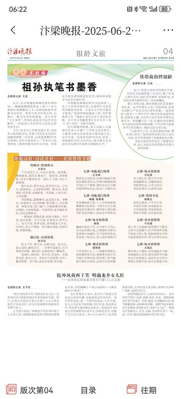 注:砖木范,塔砖依木塔式样,有榫有眼,有沟有槽,垒砌起来严密合缝,堪称琉璃塔的创新和典范。一艇句,曾携诗社同好赴铁塔湖泛舟吟和。