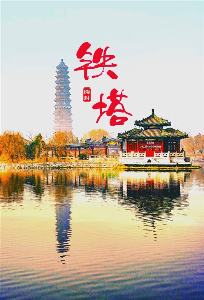 古塔雄姿开宝寺,斜阳琉瓦金晖。千年浩气雅云飞,挂铃声正响,铁骨影当巍。