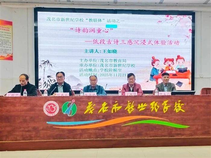 11月21日,由茂名市教育局主办、市新世纪学校承办的低段古诗沉浸式体验活动顺利开展。活动围绕“三感启蒙”理念,依托“诗画童声”教学方法,创新运用“动、看、唱”三种学习路径。学会监事长王如晓担任主讲,以《咏鹅》《静夜思》《春晓》等诗为例,引导学生通过肢体演绎、画面想象与旋律吟唱,全方位感知诗词的节奏、意境与韵律。该模式贴合低龄学生认知规律,将传统文化学习转化为生动体验,有效推动学生从“被动记忆”迈向“主动感悟”。