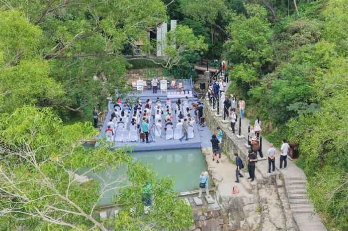活动分为“山水雅集·拾级寻艺”、“书法长卷·共书雅集”、“亦兰亭讲习”、“曲水流觞·文人论道”等环节。“曲水流觞·文人论道”环节再现古雅意境,将活动推向高潮。文艺名家临水而坐,以茶代酒,以诗会友。《诗刊》原主编叶延滨携四十年诗心入岭南,畅谈文艺精神对现代人心的治愈力量;广东省作家协会主席谢有顺从文学批评角度,剖析雅集续脉的当代意义;刘宏卫即兴赋诗,以凝练诗句捕捉山水灵韵;珠海市书协主席朱起明携本土书家,吟咏岭南风物与兰亭精神;王志刚承二王法脉,分享绍兴兰亭传承经验;张法亭深入诠释石溪摩崖与兰亭文化的内在联结。南北文心在此交融,再现“一觞一咏,畅叙幽情”的文人气象。