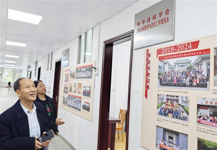 2025年11月3日上午,韶关诗社名誉社长刘雪庚到访广东中华诗词学会。广东中华诗词学会秘书长祁丽岩、办公室副主任陈桂萍、韦澜热情接待了刘雪庚社长。在祁丽岩秘书长的陪同下,刘雪庚社长参观了学会位于广东技术师范大学北校区的新办公场所。