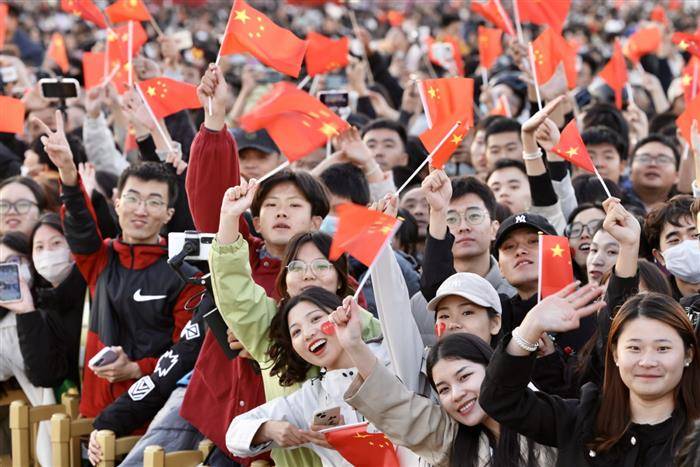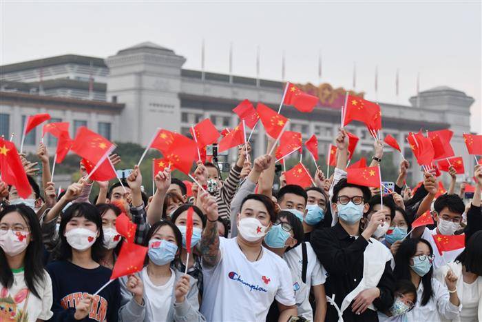 国庆抒怀红旗招展迎华诞,载舞欢歌意气扬。