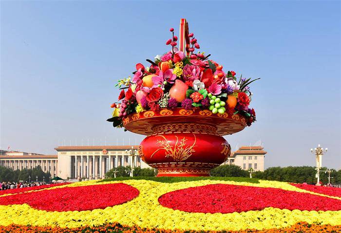 国庆遐想四十八载顶千钧,谱写中华历史新。