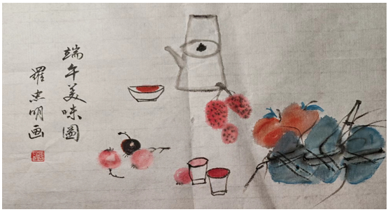 红榴艳艳又端阳,箬叶丝丝缠粽香。