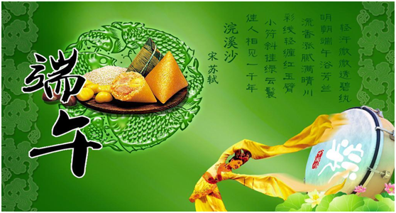 麦收时节插秧忙,桃子香甜杏子黄。门悬艾叶离骚唱,家家飘粽香, 汨罗千载流长。龙舟竟,劲鼓扬,端午时光。