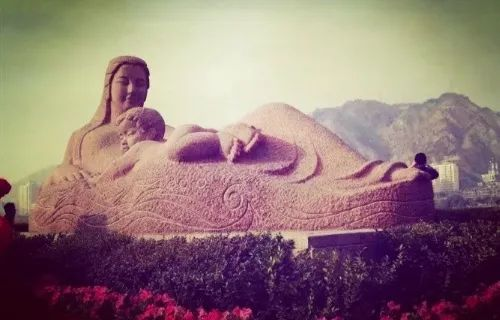 母亲河塑柔神韵,子息知恩注目虔。