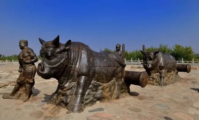 几更朝代易墩木,犹震雄关守铁牛。